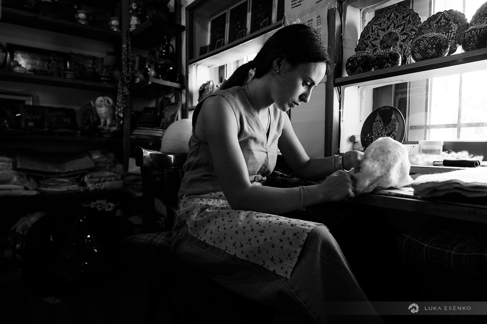 I spent two days in Kruje while scouting Albania for future photo workshops. I chose this town for its historical significance, scenic location, and traditional crafts. Kruje is known for preserving two traditional crafts: carpet weaving and Albanian hat making. The felt hat, locally known as qeleshe or plis, has been produced for generations at the Qeleshepunues Hyseni workshop. Ndriçim Guni and his son Ardian continue to craft felt hats and slippers using traditional, centuries-old methods in their workshop, located in the heart of the old bazaar in Kruje (Pazari i Vjetër i Krujës).