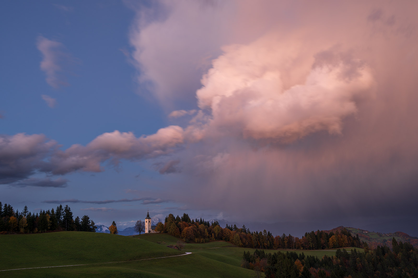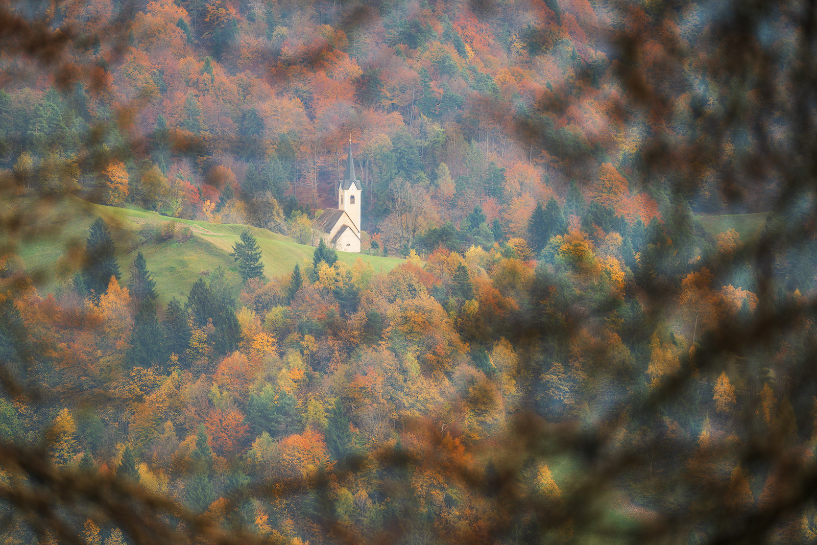My first trip was to the hilltop church of Sveti Ožbolt (St Oswald), tucked somewhere between Polhov Gradec and Škofja Loka. This lesser-known spot is one of my favourites — peaceful, a little off the radar, and for reasons I still don’t understand, completely ignored by photographers. I’ve never met a single one up there.