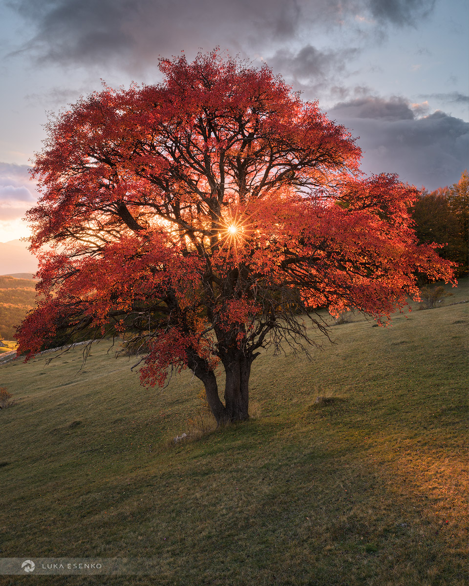 When planning my workshops for the following season, I allowed myself two extra nights in Durmitor after finishing with the group. I returned, booked a room in Žabljak, and drove out to find the tree. I saw it from a distance — glowing red again! How amazing.