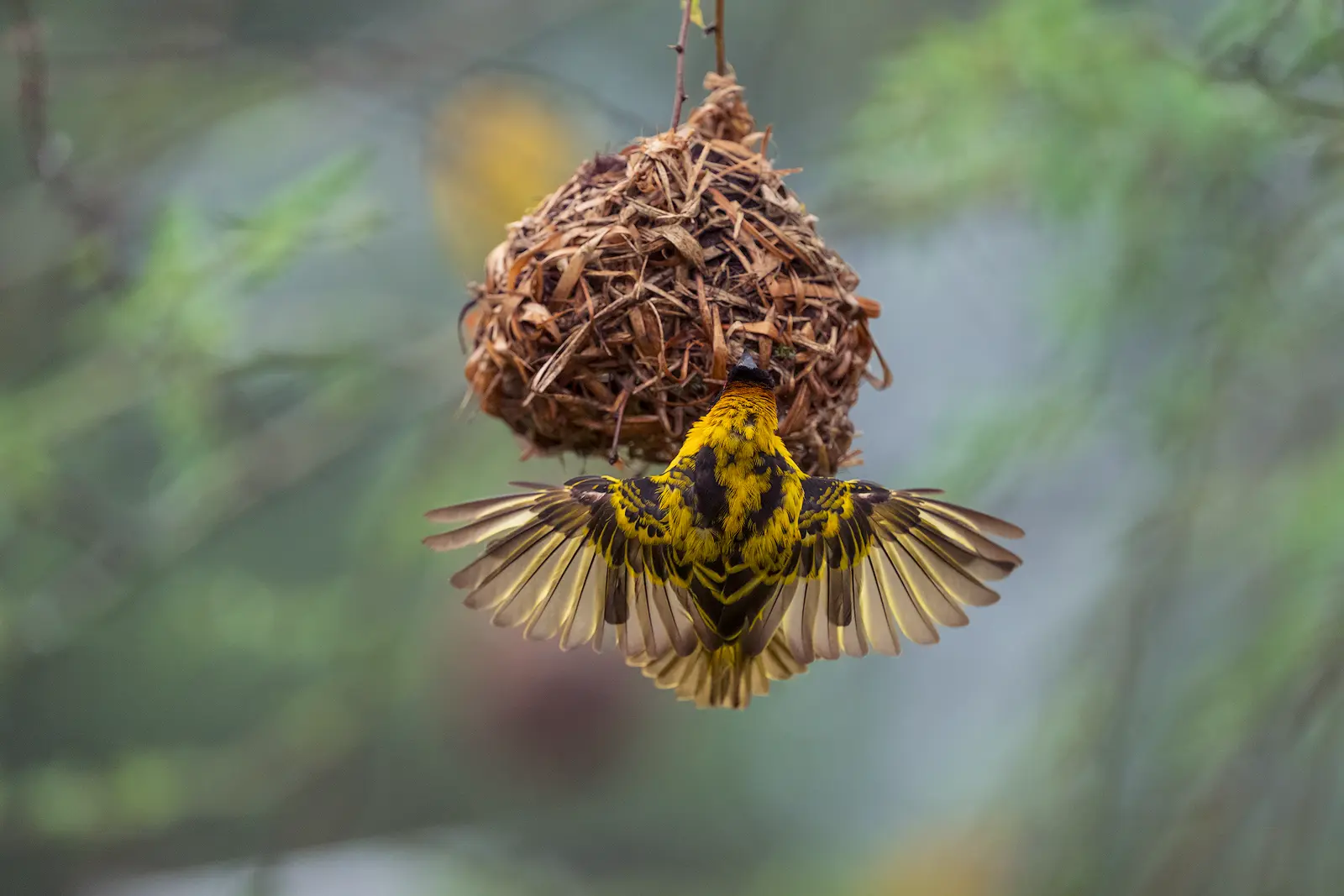 It was fascinating to follow individual birds as they started building. One single blade of grass. That’s all it takes to begin. They attach it to a branch and start weaving. First, a loose loop. Then a stronger circle. Slowly, it becomes more structured, more rounded, layer upon layer, until it turns into a perfectly formed hanging nest. All done with their beaks, working with incredible speed and precision.