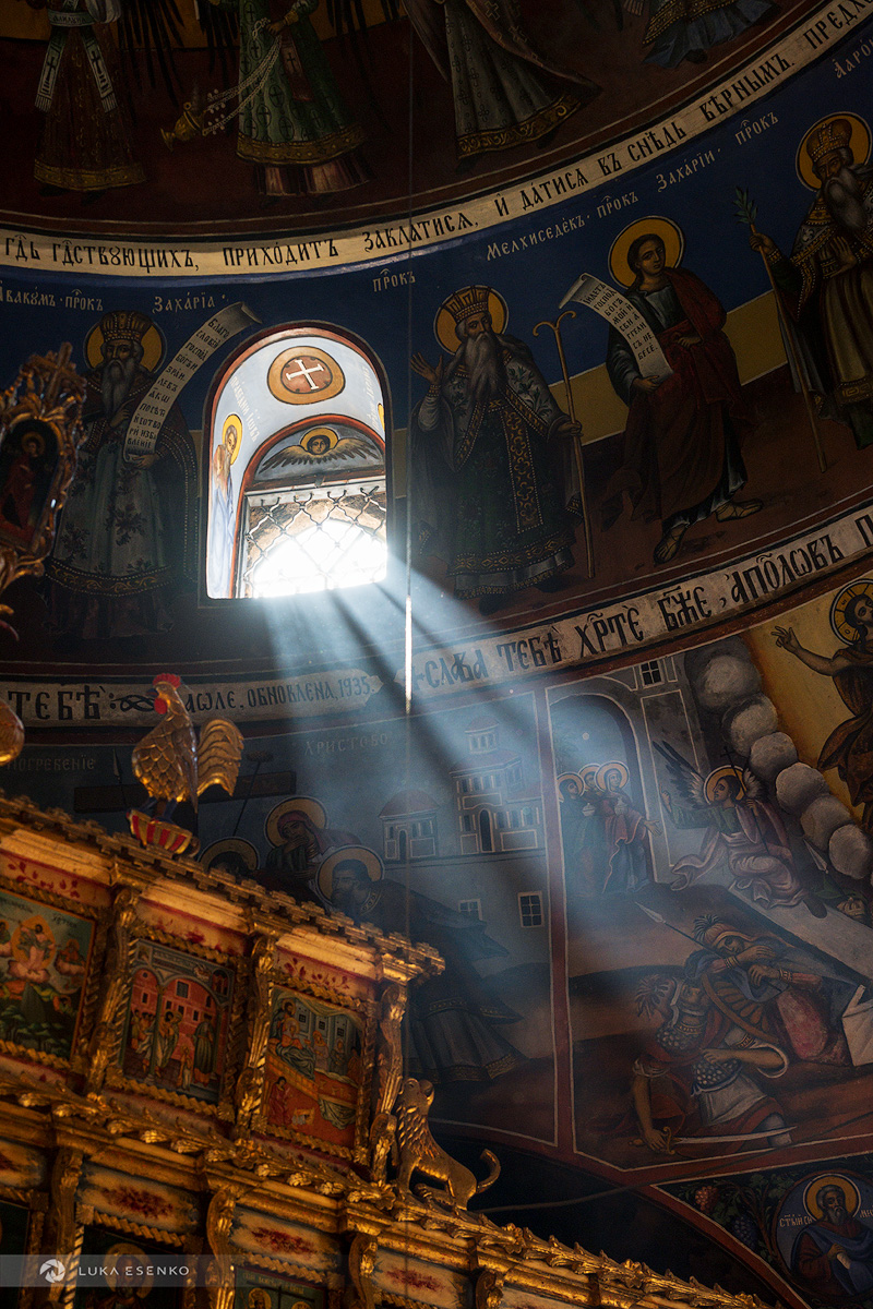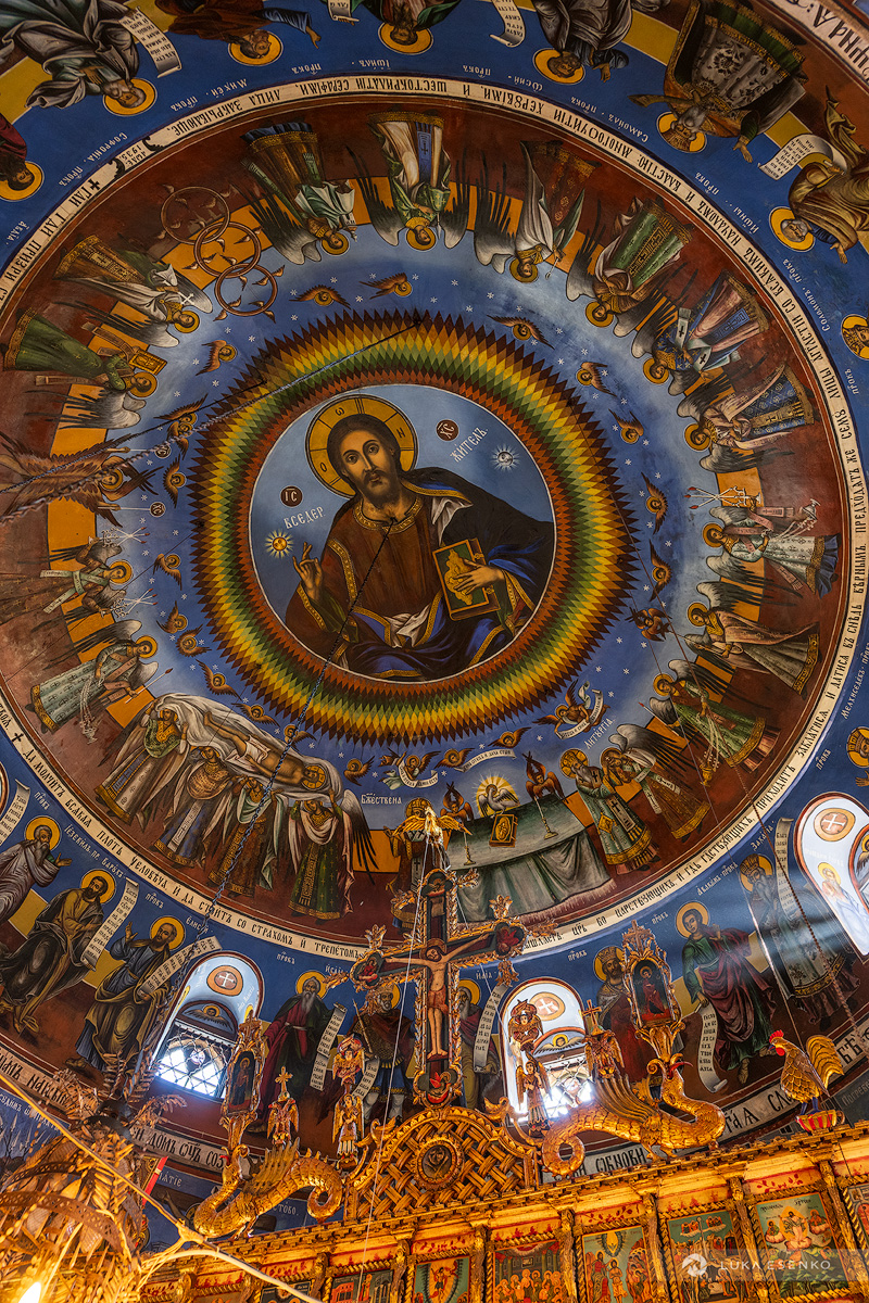 The next morning we prepared an easy breakfast, packed our campsite and returned to the village. We walked to the church, which was now open for the Sunday ceremony. Built in 1841 by a local leader named Gjurčin Kokale, the Church of St. George (Црква Св. Ѓорѓија) was designed to look like a fortress to protect the villagers from bandit raids, which were common in the “Wild West” days of the Ottoman Empire. The exterior is all tough, defensive stone, but the inside is pure art. It features a stunning iconostasis and vibrant frescoes painted by Dicho Zograf, the most famous Mijak painter of the 19th century.