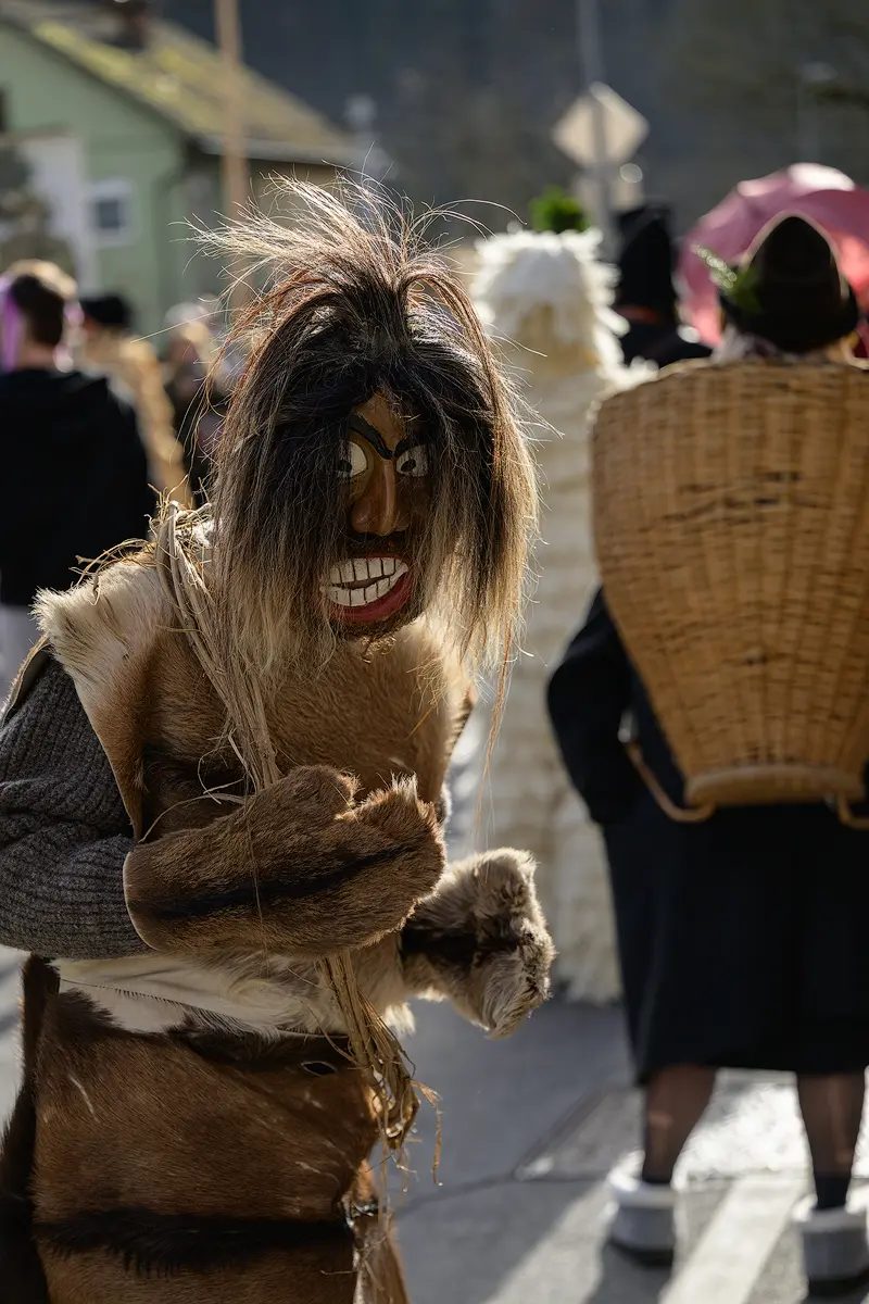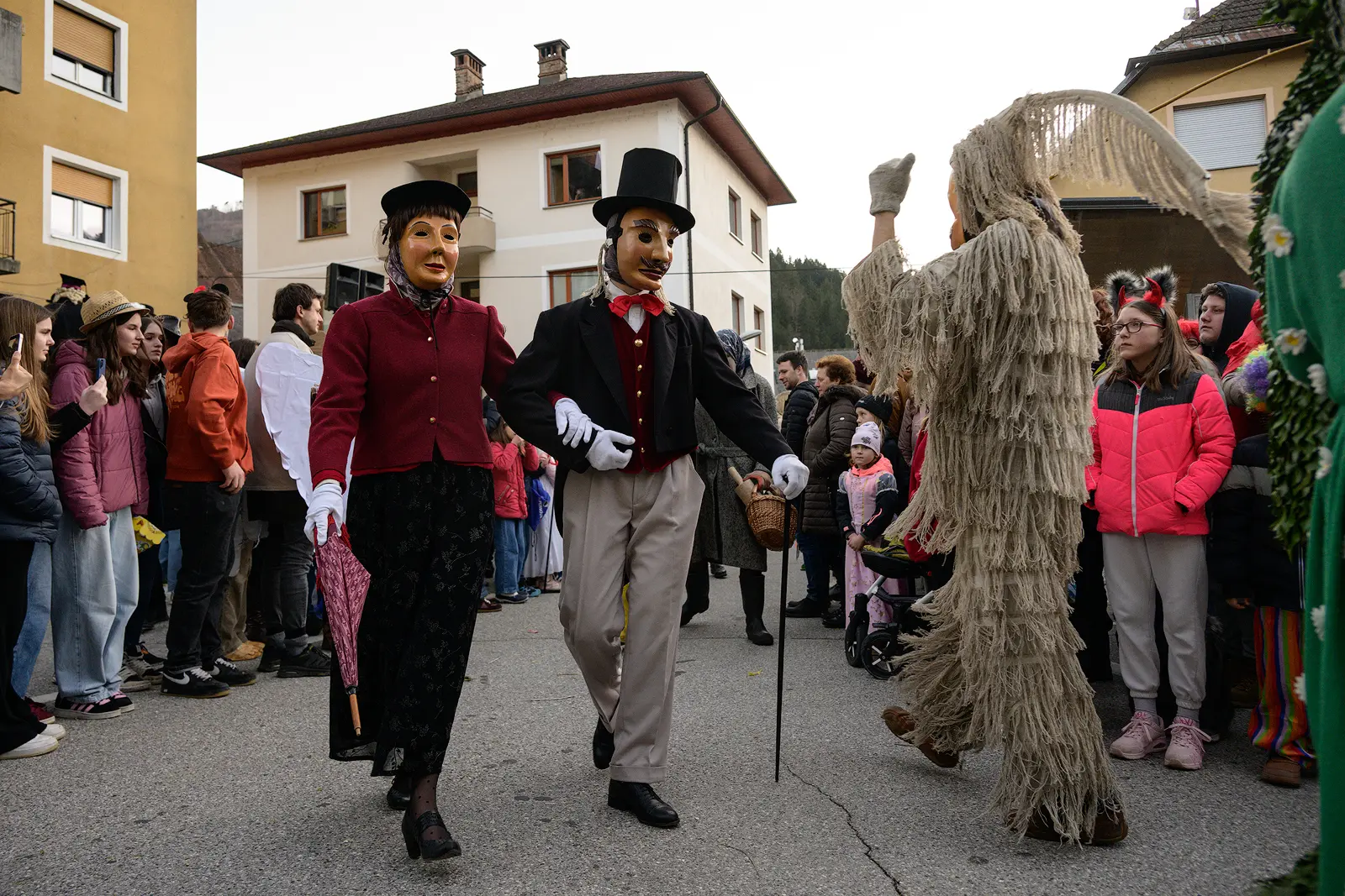 There are 25 traditional characters in the Laufarija cycle. Each appears at a specific time and place during the carnival season, following unwritten rules that locals take seriously. The central figure is Pust — the symbolic scapegoat blamed for the misfortunes of the past year. At the end of the season, Pust is publicly judged and executed, closing the ritual cycle and symbolically clearing the way for spring.