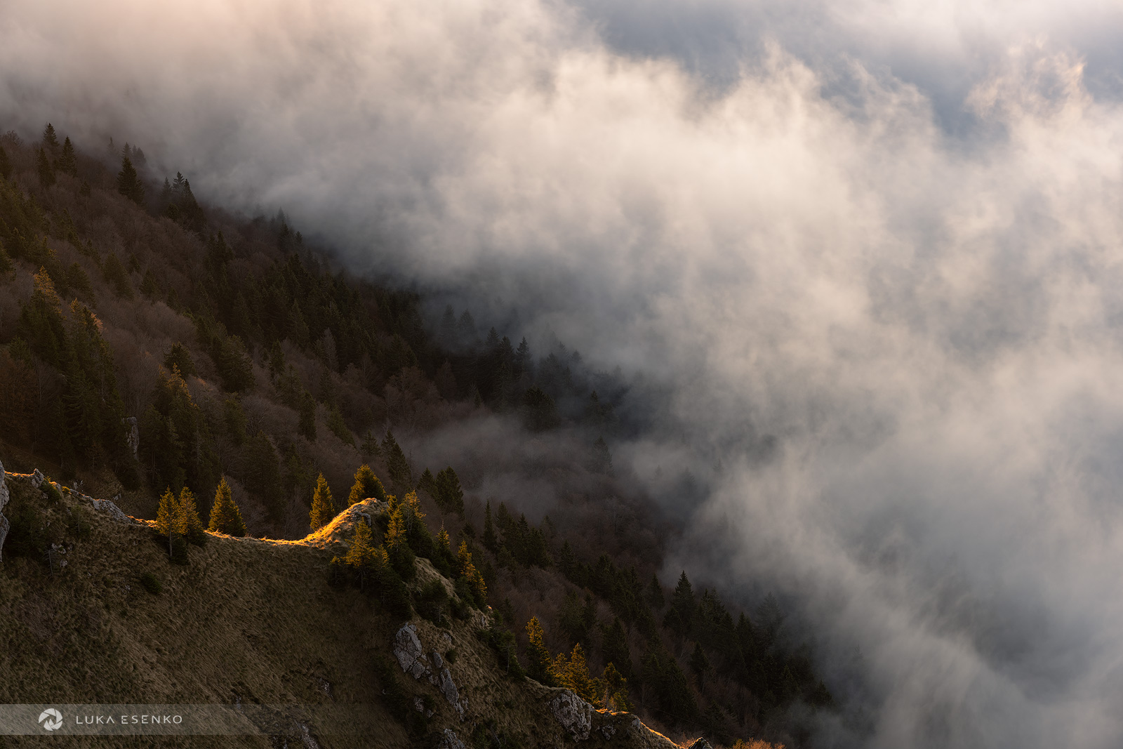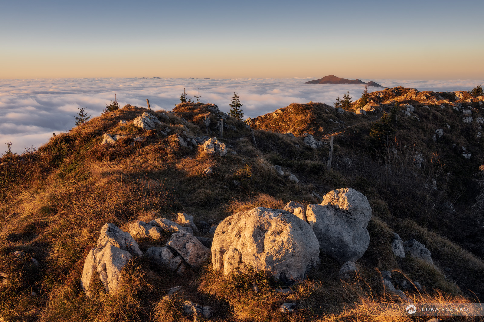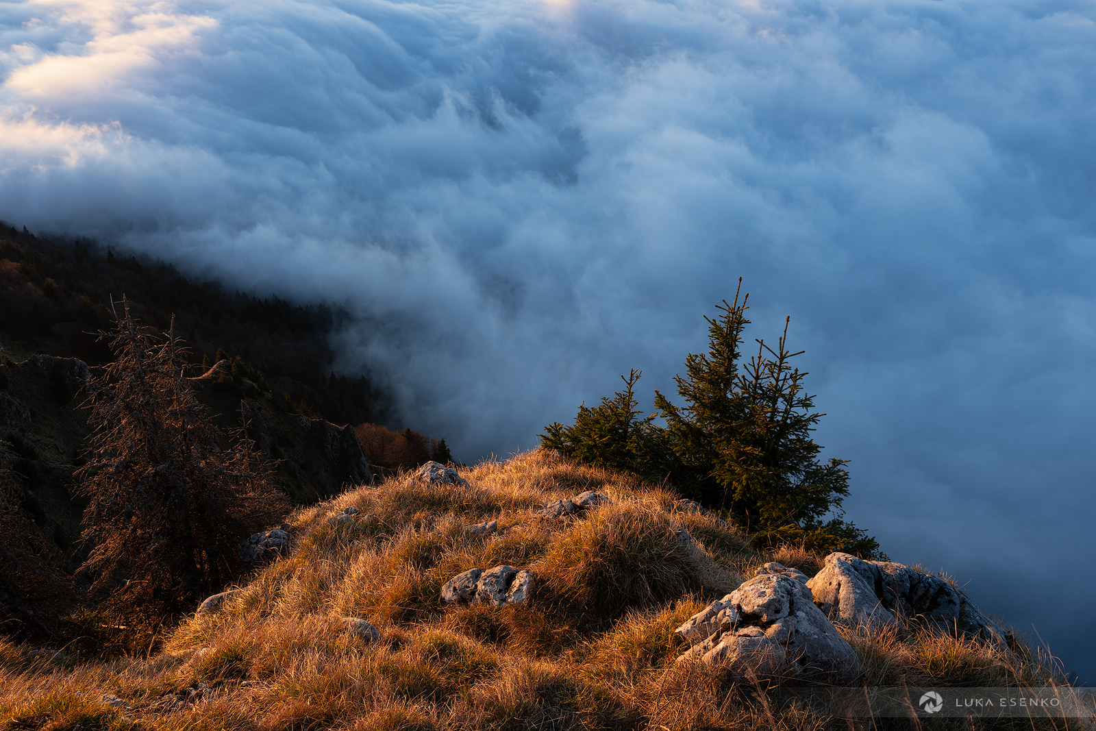Ratitovec has multiple peaks and the naming can be a bit confusing. Altemaver is the highest peak with 1678m above the sea level. Other peaks are named Kreman, Gladki vrh and Kosmati vrh. The best viewpoint for photographers is Altemaver because of its interesting ridge. This is great for wide angle shots for an interesting foreground. There are great views from the nearby of the mountain hut (Krekova koča). The sharp rocks just below the hut are also a great foreground – you will pass them if climbing up from Ptrovč or Torka directions.