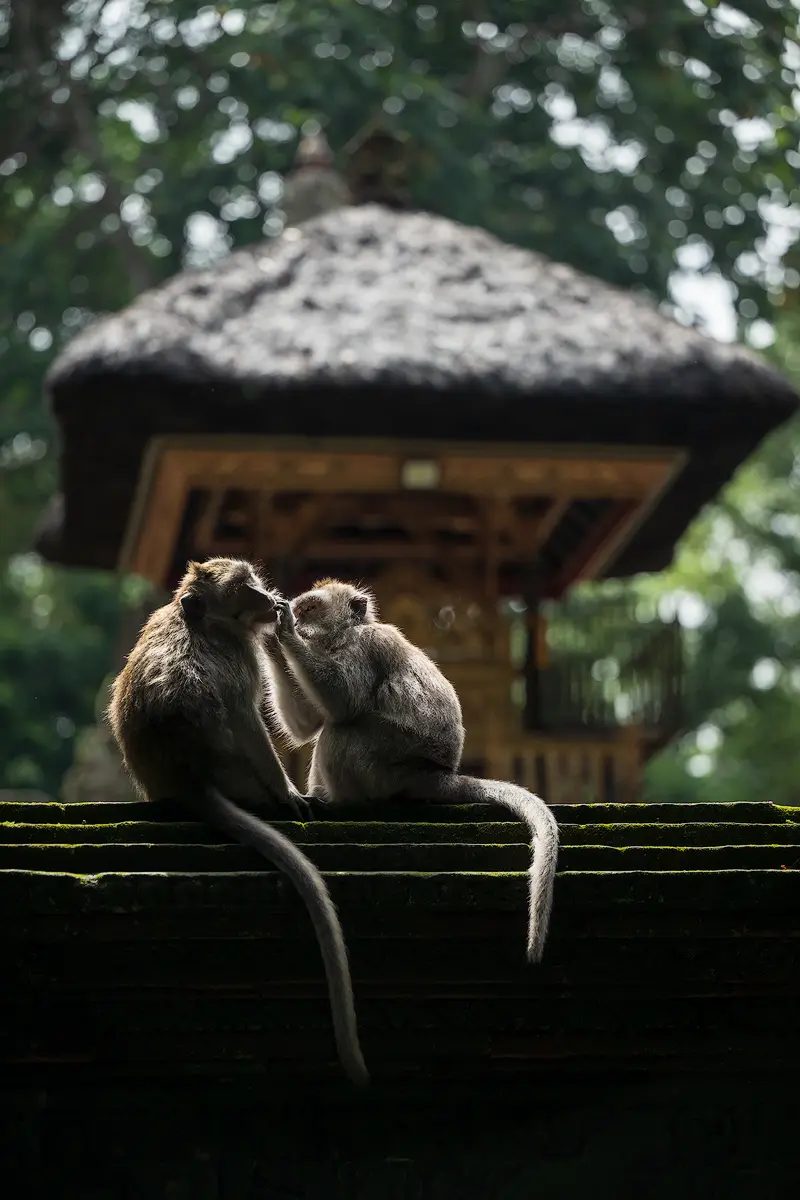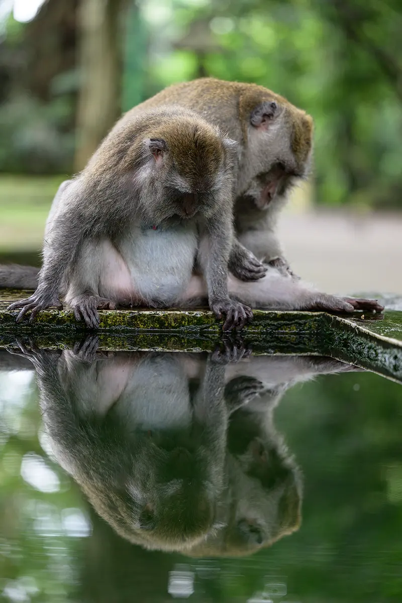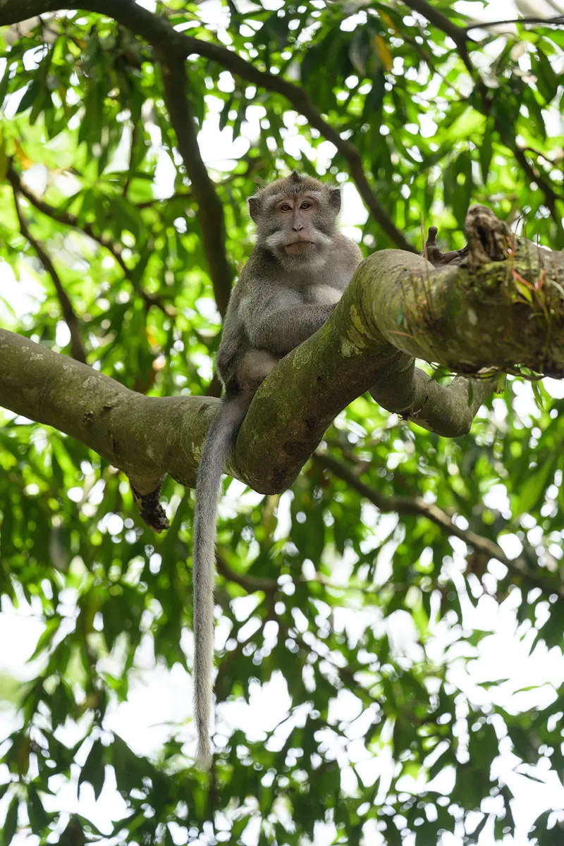 A telephoto lens is definitely the most useful piece of gear here. Having visited the park twice now, I relied on two lenses for the majority of my shots: the Nikon Z 70-200mm f/2.8 and the Nikon Z 100-400mm. Both are fantastic for this kind of photography. Since the monkeys are quite close, extreme reach isn’t a problem. However, the harsh sunlight filtering through the canopy can be tricky to expose for, so it is best to time your visit on an overcast day or when the sun is low on the horizon. Other than that, photographing in the monkey forest in Ubud is quite straightforward and a lot of fun.