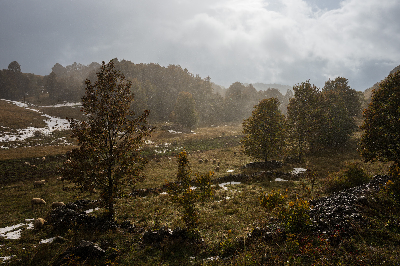 Recently, I led my Mountains of Montenegro photography tour, and this year turned out very different from what I’m used to. Early October is usually the sweet spot—autumn colours beginning to glow, shepherds still working the high pastures, decent weather, and plenty of life in the mountains. But not this time. A sudden early winter storm rolled across the Sinjajevina plateau, reshaping the landscape and our plans. Here’s a short story and a selection of photos from our two visits to this wild Montenegrin highland.