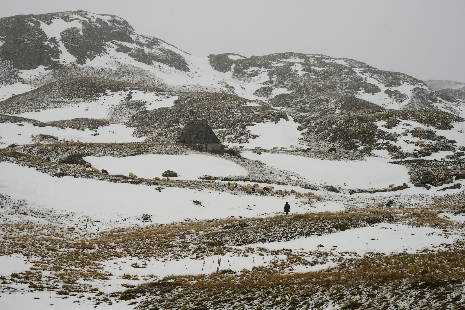 The shepherd’s name was Darko and he was collecting sheep to bring them to safety. He explained that this is the end of the season, winter has arrived, and there is nothing left for the sheep to feed on up here. He was also trying to get ahead of the heavier snow forecast for the week ahead.