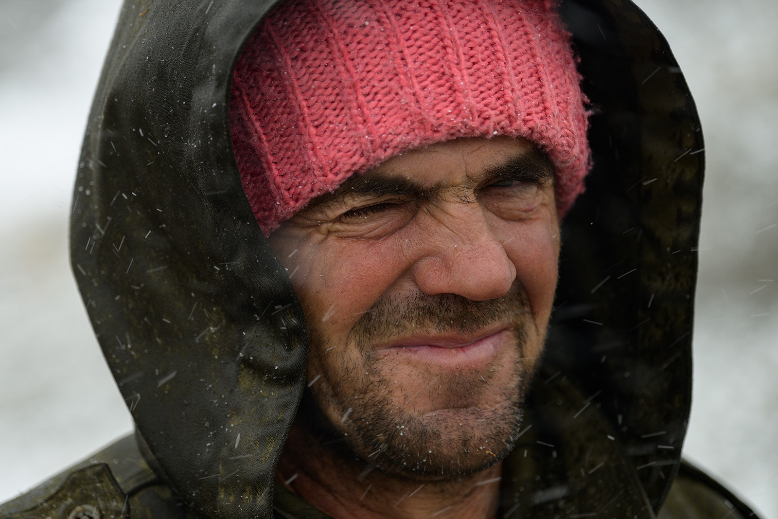 Suddenly, a flock of sheep appeared in front of us, blocking the road. We stopped, grabbed our cameras and ran out to photograph them. I noticed a person in the distance with a dark jacket and a hoodie. We waited respectfully until the sheep were gone, then approached the man.